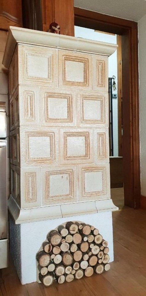 🤍 Cucina combinata con soggiorno, tipica stube di montagna, divano letto alla francese, radio e TV a schermo piatto. Completamente attrezzata con lavastoviglie, forno tradizionale e a microonde, frigo, congelatore, moka, macchina del caffè e bollitore